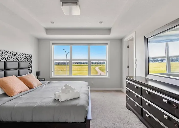 De 3-slaapkamer Large House Near Calgary Airport With Central Ac, Double Car Garage Parking, Upgrade Stay, Netflix, Sleeps 8 villa ligt op afstand van 6 km van Calgary SpacePort en biedt toegang tot verschillende attracties in de omgeving. Gasten van het vakantiehuis, gelegen in de Northeast Calgary wijk van YYC, kunnen ook gebruikmaken van een privéparkeerplaats ter plaatse.